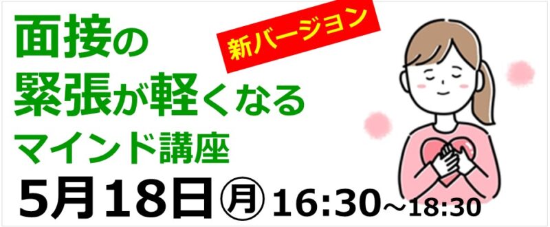 - 講座・イベント『【新バージョン】面接の緊張が軽くなるマインド講座<6/19>★受付開始:5/15』がオープンしました。