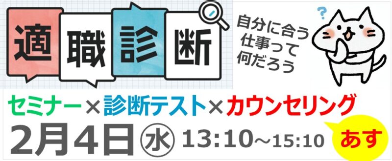 - 講座・イベント『【NEW!】SPI問題トレーニング(パソコン)<3/16>すぐに使える就活講座★受付開始:2/13』がオープンしました。