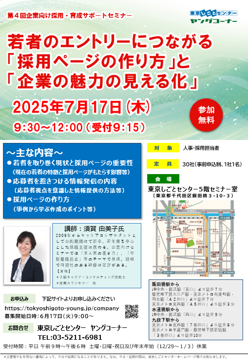 | 会場 | 東京しごとセンター5階セミナー室 |