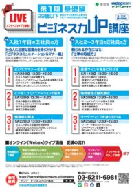 | タイトル | 【4月1日受付開始】ビジネス力UP講座 第1期 基礎編(入社1年目対象)<参加費無料> |