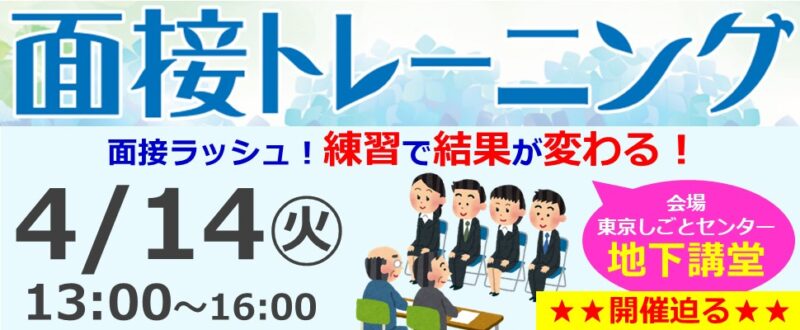| 参加費 | 無料 ※初めてご利用の方(しごとセンター多摩登録者で、飯田橋のしごとセンターを初めて利用される方を含む)は東京しごとセンターの利用手続きをお願いしております。前日までに東京しごとセンター(所在地:東京都千代田区飯田橋3-10-3)1階総合相談へお越しください。 ※出席確認などのために、予約済みの方にヤングコーナー事務局よりご連絡をさせていただく場合があります。ご了承ください。 |