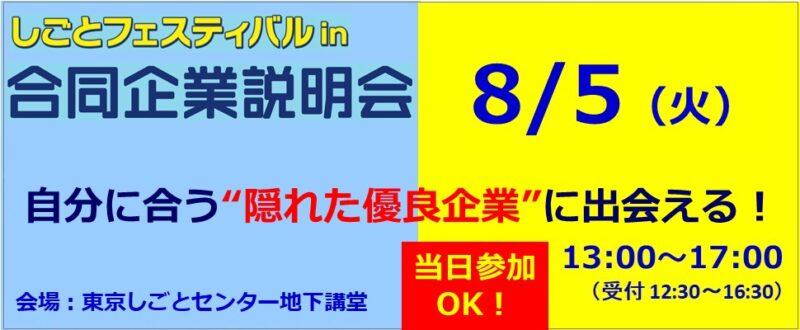 とうきょうJOBフェスタ当日、会場内でお申込みください