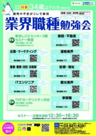 | 参加費 | 無料 ※初めてご利用の方(しごとセンター多摩登録者で、飯田橋のしごとセンターを初めて利用される方を含む)は、前日までに利用手続きをお願いしております。東京しごとセンター1階総合相談へお越しください。 |