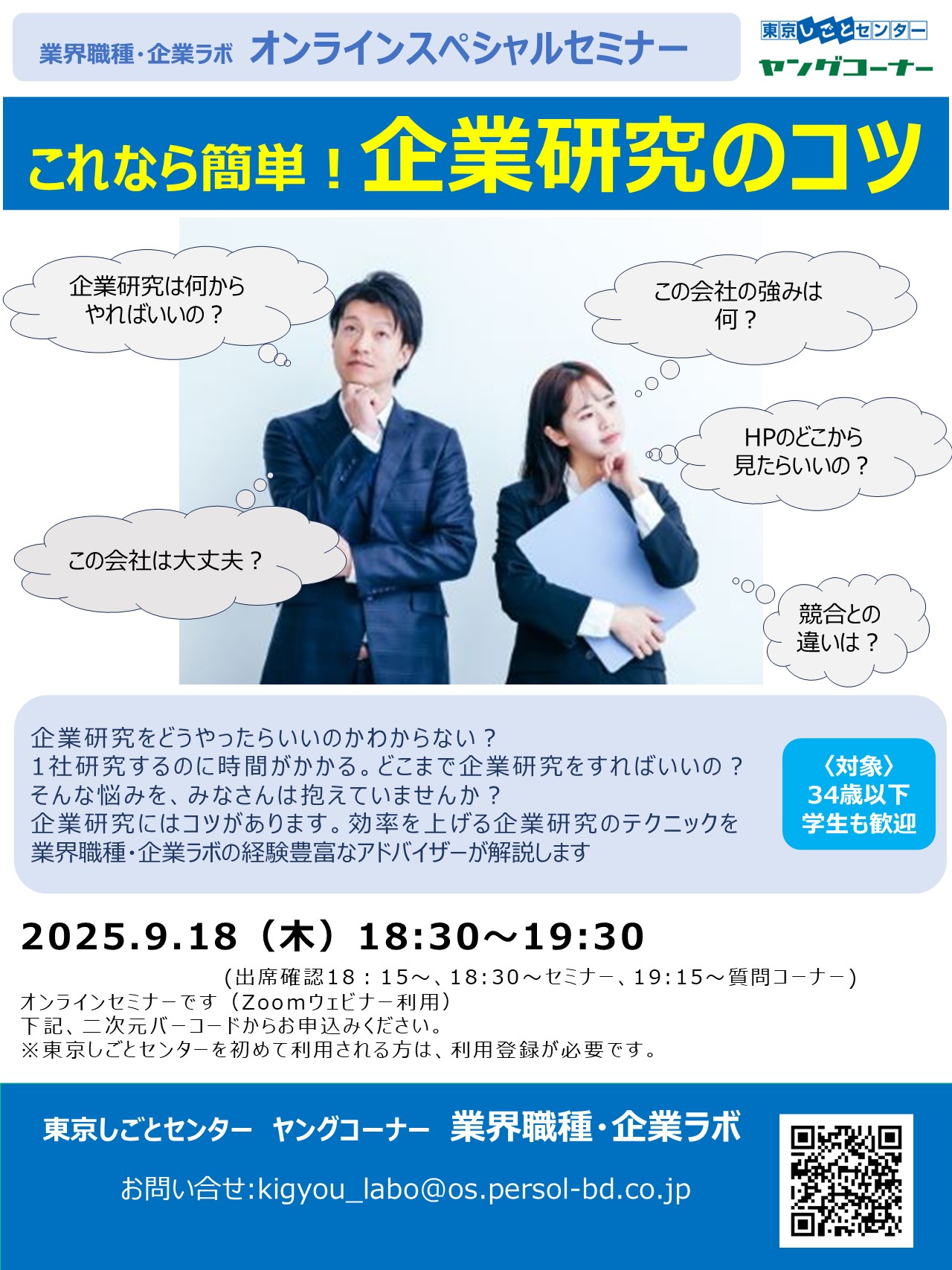 タイトル 【オンライン】スペシャルセミナー これなら簡単!企業研究のコツ