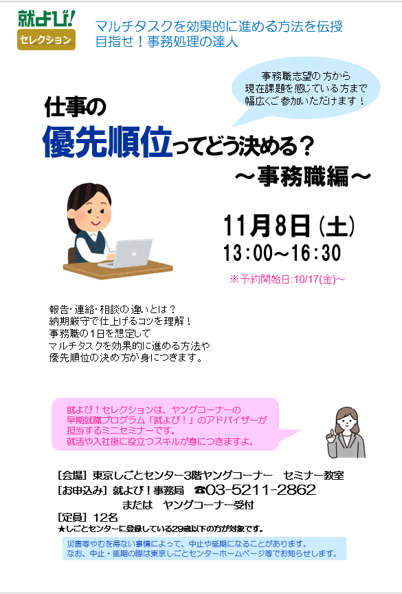 | タイトル | 就よび!セレクション「仕事の優先順位ってどう決める?」 事務職編 |