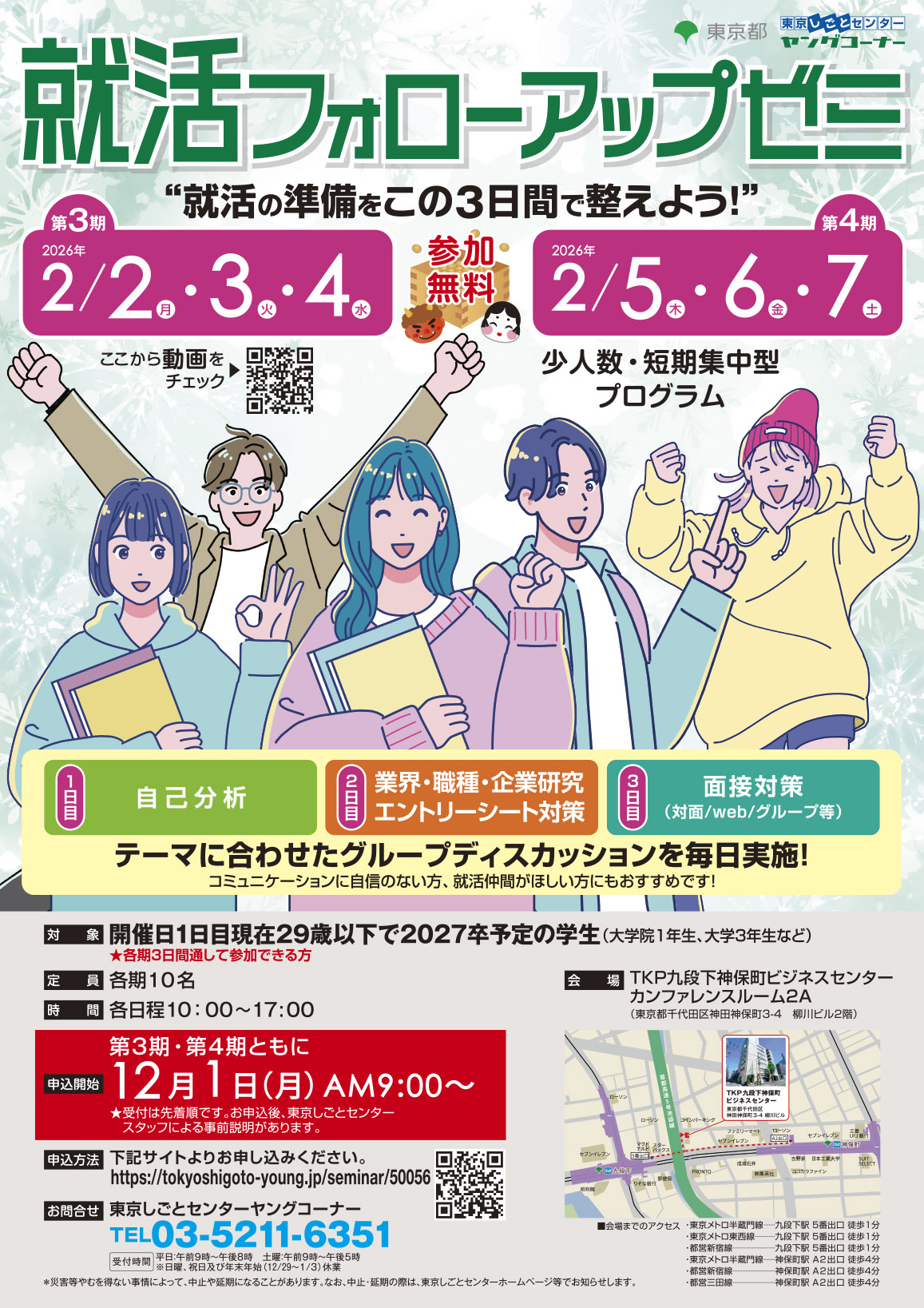 | タイトル | \就活フォローアップゼミ/就活の準備をこの3日間で整えよう! |