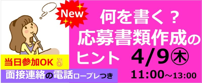 ★当日参加ご希望の方は、10:00までに会場(東京しごとセンター3階セミナー教室)へお越しください。