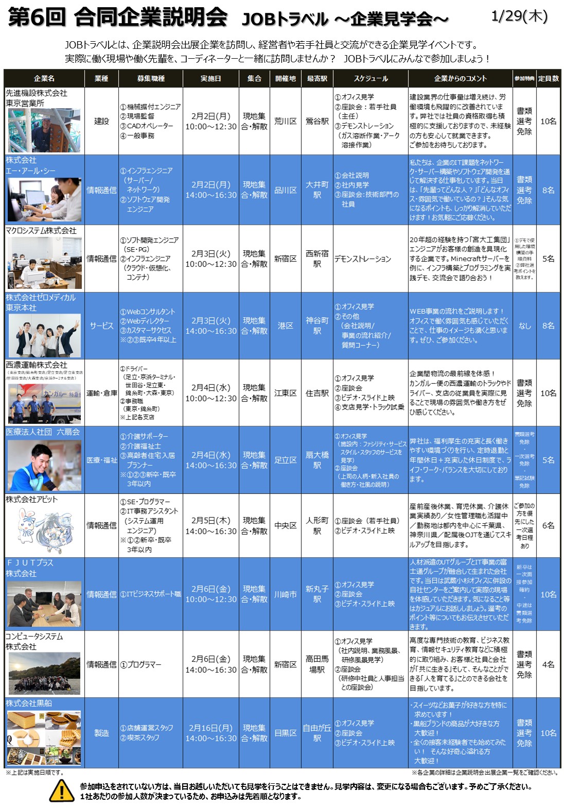 | タイトル | JOBトラベル <1/29開催 合同企業説明会 出展企業への訪問・見学会> |