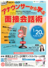 | タイトル | 【新宿】アナウンサーから学ぶ面接会話術<1/20>新宿エルタワー★受付開始:12/23 |