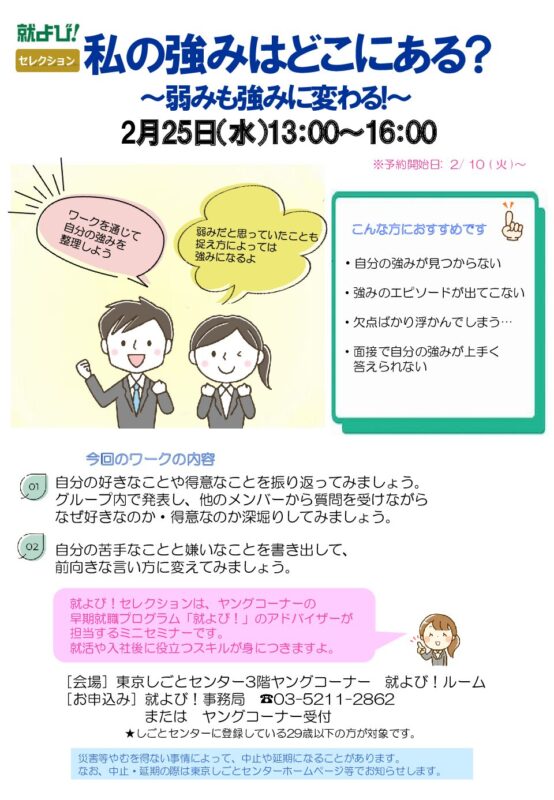 | タイトル | 就よび!セレクション 私の強みはどこにある? ~弱みも強みに変わる!~ |
