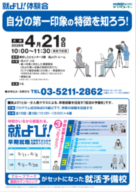 | 就よび!体験会「自分の第一印象の特徴を知ろう!」 | |