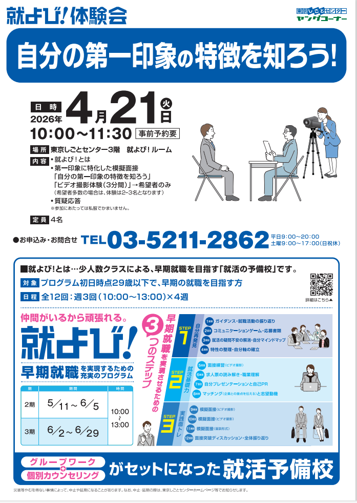 | 会場 | 東京しごとセンター3階ヤングコーナー 就よび!ルーム |