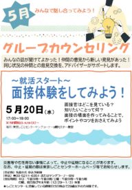 | タイトル | グループカウンセリング「~就活スタート~ 面接体験をしてみよう!」 |
