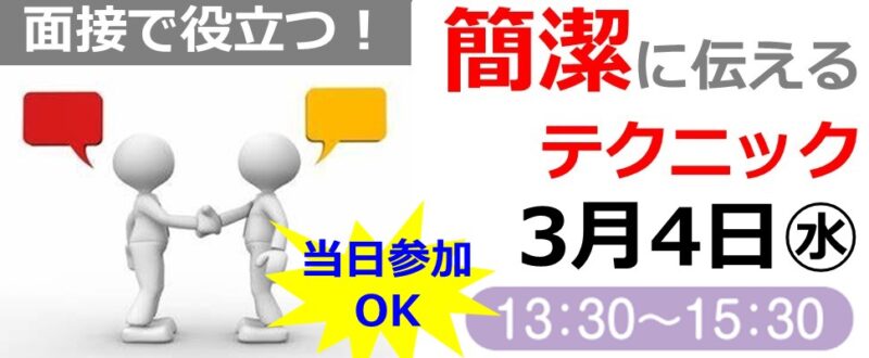 | 注意事項 | ※セミナー予約のキャンセル・遅刻は、お早めに東京しごとセンターヤングコーナー(03-5211-2851)まで必ずご連絡ください。 遅刻の場合は、入室をお断りすることがございます。 ※出席確認などのため、予約済の方にセミナー事務局よりご連絡をさせていただく場合があります。 |