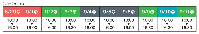 10:00~16:00 または 10:00~16:30★土・日・祝日を除く10日間のプログラムです。